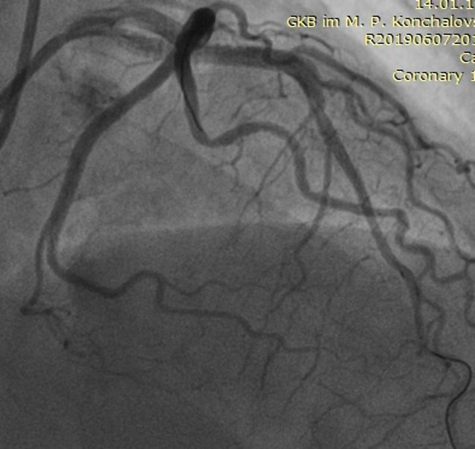 Despite the emergence of reperfusion therapy (thrombolysis and emergency angioplasty), mortality from acute myocardial infarction currently remains high, amounting to about 5–7% in developed countries4,5. It is well known that the adequate use of DAPT can reduce the risk of early and delayed restenosis of implanted stents, as well as the incidence of recurrent myocardial infarction (MI) after ACS9. Although spontaneous reperfusion occurs in some patients, most patients with acute myocardial infarction have persistent thrombotic occlusion of the coronary artery during the formation of myocardial necrosis6. In some patients with ACS with ST segment elevation, when registering an electrocardiogram in dynamics, the ST segment drops to the isoline, or decreases by more than 70%. During coronarography, there is no occlusion of a heart attack-associated coronary artery. This phenomenon is described in the literature and is called “spontaneous reperfusion”; according to some sources, the incidence in patients with ACS reaches 35%7,10. The problem of endogenous fibrinolysis is described in the work of A. Kalinsky. et al., in 2019, where it was shown that when measuring in vitro, the process of thrombus formation and thrombus lysis proceeds more actively in patients with ACS, compared with the control group, which indicates the initial activated state of hemostasis among patients. Within the same group of patients with ACS, it turned out that the larger the existing thrombus in the lumen of the coronary artery, the more active the balance shifts towards the activation of the anticoagulant and fibrinolytic systems. Thus, in patients with ACS with ST segment elevation, the process of endogenous fibrinolysis depends on many factors, such as dyslipidemia, diabetes mellitus, uric acid level, and smoking11-15. However, it is often difficult for a practitioner working in an emergency RVC hospital to determine the management tactics of such patients and decide on conservative or surgical treatment. The article presents the experience of managing such patients in the RVC on the basis of the Moscow State City University Clinic named after M.P. Konchalovskiy of Moscow Health Department.