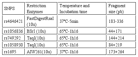 Table 3. Restriction enzymes` conditions used for Genes polymorphism genotyping
