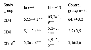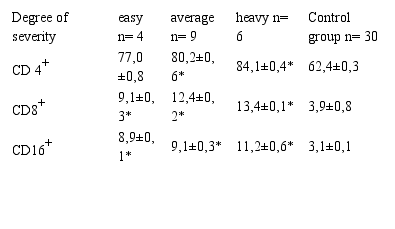 After isolation of the study groups, all patients underwent a special laboratory examination, including immunological blood tests with the determination of CD4+, CD8+, CD16+ HCT test, CEC, Ig G, M, A, TLR expression determination 2, 4 on the surface of blood monocytes of patients.