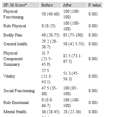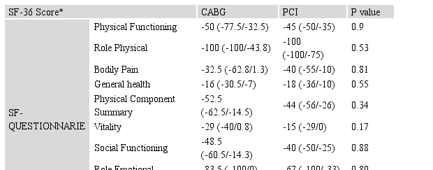 Table 4. Quality of life among patients with CABG ** compared to PCI*** using SF-36 health questionnaire (n=49).