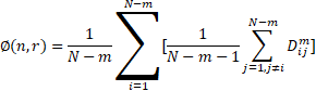 Entropy is index of irregularity of a signal15. Higher entropy value indicates higher complexity and less regularity in a given signal. Among various proposed method for entropy calculation, sample entropy and fuzzy entropy are the two most used methods in the entropy analysis of physiological signals16. The entropy calculation for a given time series is as follow.