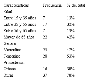 Materiales y métodos: Se realizó un estudio descriptivo trasversal, la muestra estuvo constituida por 53 historias clínicas de pacientes que cumplieron los criterios de inclusión, como: diagnosticados con NAC, en el periodo de enero a diciembre de 2016, de cualquier género y mayores de 18 años considerando las variables de estudio: características sociodemográficas, características clínicas, ayudas diagnósticas, criterio de hospitalización, escala de gravedad, diagnóstico y tratamiento.