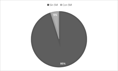 De acuerdo con el criterio de la IDF, el 5% de los pacientes observados fueron clasificados con SM (n=4); 3 de sexo femenino (3,75%) y 1 masculino (1,25%) (Figura 1).