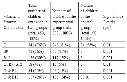 Table 2. Children with a deficiency or deficiency of vitamins D, B9 and B12