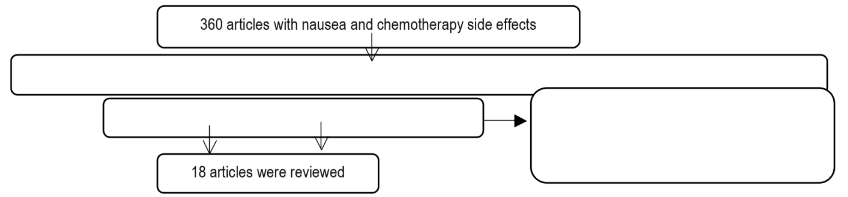 140 articles were examined in more detail, 122 of which did not specifically address the strategies for dealing with chemotherapy-induced nausea. Finally, 18 articles were included in this review study (PRISMA chart).
