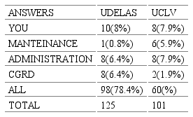 Based on all these criteria in both universities, the safety of the institutions was also investigated based on the most significant risks, the responsibility before them. In the case of UDELAS and UCLV, the results are shown in tables 5 and 6.