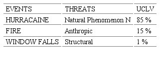 University teachers identified the following threats according to their experiences: a. Structural threats (falling windows) b. Anthropic threats (fire) c. Natural threats (hurricanes and tornadoes)