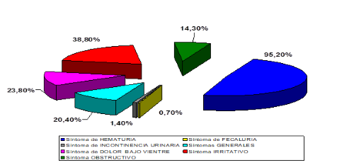 Bladder cancer is the sixth leading cause of death in Cuban men and the tenth in women10. It is considered a "silent disease", because while the cells are transformed and increase, up to 10 years can pass without symptoms. The true cause of prostatic carcinoma is unknown, but it is clear that its growth is influenced by sex hormones. It is common for the symptoms of prostatic carcinoma to appear in the late phase of its development and are usually due to local obstructive infiltration, distant metastases and chronic stasis-induced urinary infection11.