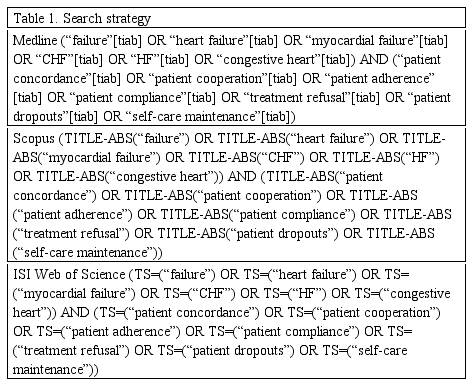 We have reviewed literature on implications of RAM on adherence to treatment regimen, in patients with HF in English databases Medline, Web of Science, Scopus and Persian databases SID, Iranmedex, Magiran between the years 2010-2017. The search was conducted on topics related to medical behaviors (medication adherence) and non-pharmalogical recommendations (lifestyle) in HF (Table 1).