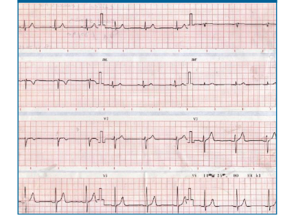 Due to the unspecific nature of the clinical picture and being an intermediate risk patient for coronary artery disease, 12-lead surface electrocardiogram and coronary calcium quantification (Calcium Score) are indicated. A normal 12-lead surface electrocardiogram shows a normal trace, without alterations suggestive of myocardial ischemia (see Figure 1). The electrocardiogram has a sensitivity test of 49% and a specificity that is close to 92%. Approximately 40% of patients with chest pain have a normal path; another group presents changes in the ST and in the T wave. 50% of acute infarctions raise the ST, and in 20% it is normal or non-diagnostic.
