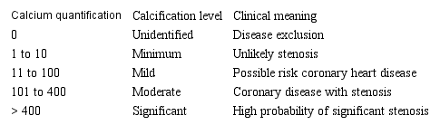 One of the most interesting applications of multislice computed tomography (MSCT) is the quantitative evaluation of calcium in the coronary arteries1. It is a technique used to scan the presence of calcification in the coronary arteries, which is an evident manifestation of arteriosclerosis2.