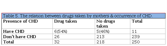 We found that 6(54%) of neonates their mothers had taken drugs during pregnancy and P value = (0.073) which is not significant. As seen in table-5