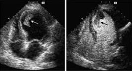 Figura 2. Imágenes 2D típicas obtenidas por ET2D (izquierda) y por ecocardiografía de contraste (derecha). Fuente: Tomada de la referencia 37