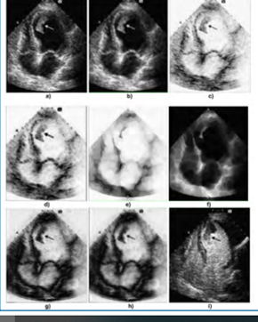 · Las imperfecciones tales como ruido y artefactos están presentes en las escenas que conforman las imágenes ecocardiográficas en las cuales se destaca el ruido ultrasónico moteado que es el factor principal al cual se le atribuye el degradado del contraste entre estructuras anatómicas cardiacas y, además, es el responsable de que los especialistas clínicos y expertos en análisis de imágenes, tergiversen el significado real de la información relevante contenida en tales imágene1..