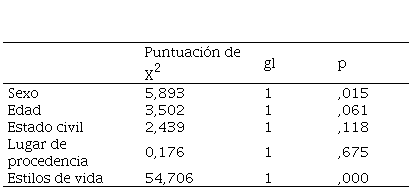 Al análisis bivariado, a partir de la prueba Chi cuadrado, se halló que las variables sexo (p=0,015) y estilos de vida (p=0,000) se relacionaron significativamente con la adherencia al tratamiento antihipertensivo