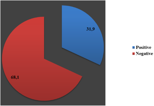 Figure 1 shows the distribution of patients with septum according to the history of the polycystic ovarian syndrome including (positive or negative). The percentage of infertile women with septum who had PCOS was (31.9%) which represents 219 women from a total 687 women.