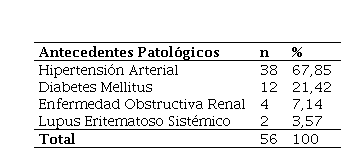 En la tabla 2 se observa los diferentes antecedentes patológicos que presentaban