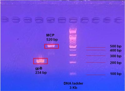 DNA Samples were repeated twice to confirm PCR results. A conventional PCR protocol was used to analyze simultaneously the presence of gpB gene. Also, the presence of the gpB gene was identified by 234 bp, as can be seen in figure 1.