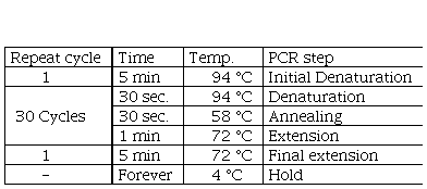 PCR thermocycler conditions were done by using a conventional PCR thermocycler system as mentioned in the following table (Table 3).