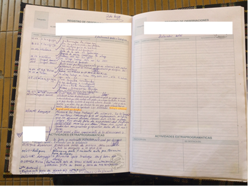 Tanto las notas de cargo como los libros de clases en su sección de observaciones, brindan pistas interesantes para indagar acerca de la regulación de los estudiantes en las escuelas. Aquellas conductas más sancionadas permiten dar cuenta de qué es lo que más se exige y cómo se va configurando dicha regulación y de esta forma performateando un modo de comportamiento escolar.
