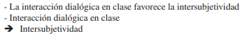 Si se asume que se busca generar intersubjetividad, este razonamiento de tipo proposicional llevaría al profesor a organizar la clase en forma de interacción dialógica.