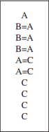 donde las dos premisas son válidas, y en cambio la conclusión anterior no lo es. Aquella conclusión, por lo tanto, se percibe ahora como inválida y la conclusión válida que puede derivarse es que algunos A no son C.