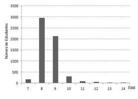 Según la edad, el 89% de los estudiantes tenían 8 ó 9 años; el 3% menos de esa edad; y el 8% restante más de esa edad (gráfico 2).