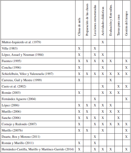 La investigación sobre enseñanza eficaz y eficacia escolar en Iberoamérica, tiene, como señala Murillo, una larga tradición habiéndose publicado algunos trabajos de excelente calidad (Murillo 2007a). Una revisión de los mismos (Tabla 1), indica que los factores antes señalados también han aparecido en ellos.