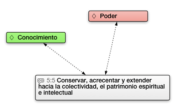 Se encuentra patente la existencia de elementos propios del conocimiento y el poder en la cita utilizada, pero se dificulta realizar una asociación entre los códigos ya que la cita no da luces sobre cómo podrían interferir estos dos conceptos, solo se los categoriza y se los presenta como una densidad involucrada en la unidad hermenéutica, pero realizar una asociación entre los códigos sería forzar sus asociaciones.