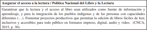 CNCA. (2006). Política Nacional del Libro y la Lectura. Santiago de Chile: Consejo Nacional del Libro y la Lectura.