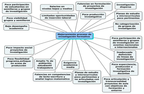 Quedan algunos aspectos por mejorar en el proceso de investigación formativa dentro de la institución; es claro que aún falta consolidar el trabajo con los semilleros de investigación y que la producción académica puede ser mayor, además se debe trabajar en la construcción de planes de estudio y micro currículos transversales y pertinentes, alineados con las necesidades del medio, donde la investigación sea una estrategia de formación en las aulas de clase y la totalidad de los docentes asuman un papel de tutores, que no solo transmiten información sino que asumen un rol activo como formadores. En este sentido, estrategias como los proyectos de aula, los semilleros de investigación, la metodología ABP, los estudios de caso, han sido de mucha ayuda y han permitido mejorar los procesos de formación notablemente, así que en la medida en que estas buenas prácticas se generalicen se podrán obtener mejores resultados dentro del programa. Se espera que los resultados derivados de este proyecto de investigación sirvan como insumo para apoyar futuros planes de mejoramiento.
