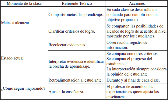Para los cursos de actividad deportiva, este proceso de evaluación formativa, dirigida a la evaluación de participación activa, se describe en la Tabla 1.