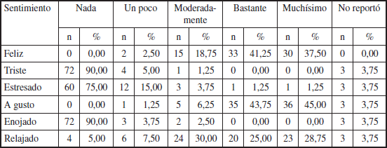 En la Tabla 5 se presenta la información relacionada a la pregunta 6, en donde se le preguntó al estudiantado sobre sus sentimientos al participar durante la clase.