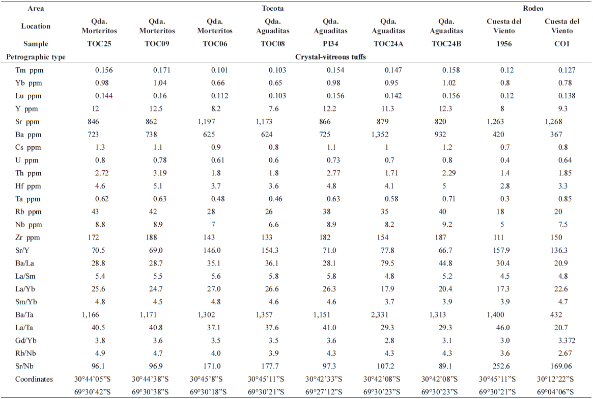 Lava flows of Quebrada de Chita and Cerro Negro show the highest La/Yb ratios, indicating enrichment in LREE compared to the coetaneous pyroclastic rocks from diverse outcrops along the Iglesia Valley Basin.
