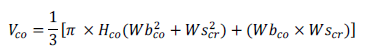 Esta considera altura (Hco) y diámetro de la base (Wbco) del cono, como así también diámetro menor del cráter (Wscr). Este último parámetro (Wscr), solo se pudo medir en conos completos, por lo que en el caso de conos de escorias aportillados se midieron de manera indirecta sobre la figura geométrica que mejor se ajustaba a la forma del cráter. Por otro lado, en el caso de las lavas asociadas a conos de escoria y domos, el volumen mínimo se estimó a partir del área y espesor de las coladas considerando una superficie plana dada la geometría de las lavas y baja relación de aspecto de los domos.