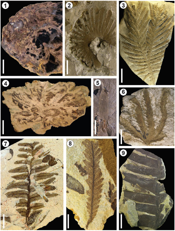 All the previously described fossil plant bearing strata were recognized and precisely placed in the respective stratigraphic sections. Fossil plants were taxonomically and taphonomically characterized. The new fossil materials were deposited in the Paleobotanical Collection of the Museo de Ciencias Naturales at the Universidad Nacional de San Juan, under the numbers PBSJ 408-457; 608-657; 730-850, 1043-1053. Furthermore, fossils previously collected and studied by Frenguelli (1944), Menéndez (1956), Bonetti (1963), Lutz and Herbst (1992), and Zamuner et al. (1999), were also revised. These materials are deposited in the palaeobotanical collections of the Museo Argentino de Ciencias Naturales “Bernardino Rivadavia”, Universidad Nacional del Nordeste and Museo de La Plata, under the acronyms BAPb/BAPbPm, CTES-PB/PMP-CTES and LPPB/ pmLPPB respectively. The photographs of the specimens were taken with Canon Powershot S40 and Canon EOS Rebel T3i digital cameras.