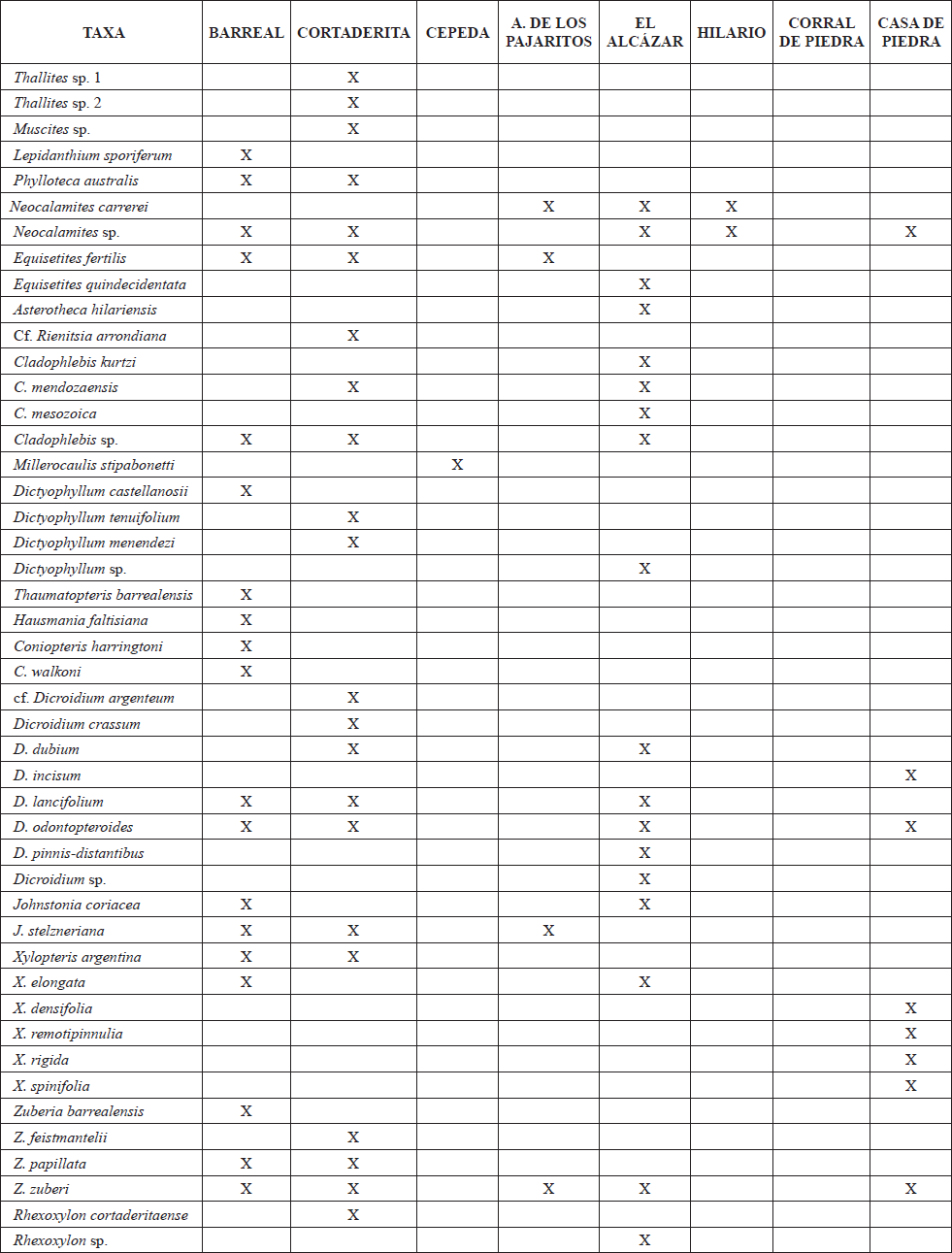 * For the localities of the fossiliferous strata defined here, see the map in figure 3.With respect to the Cepeda Formation, Herbst (1995) described the first and unique fossil plants for the unit, which correspond to the permineralized osmundaceous stems of Millerocaulis stipabonetti associated with at least one trunk of Rhexoxylon.