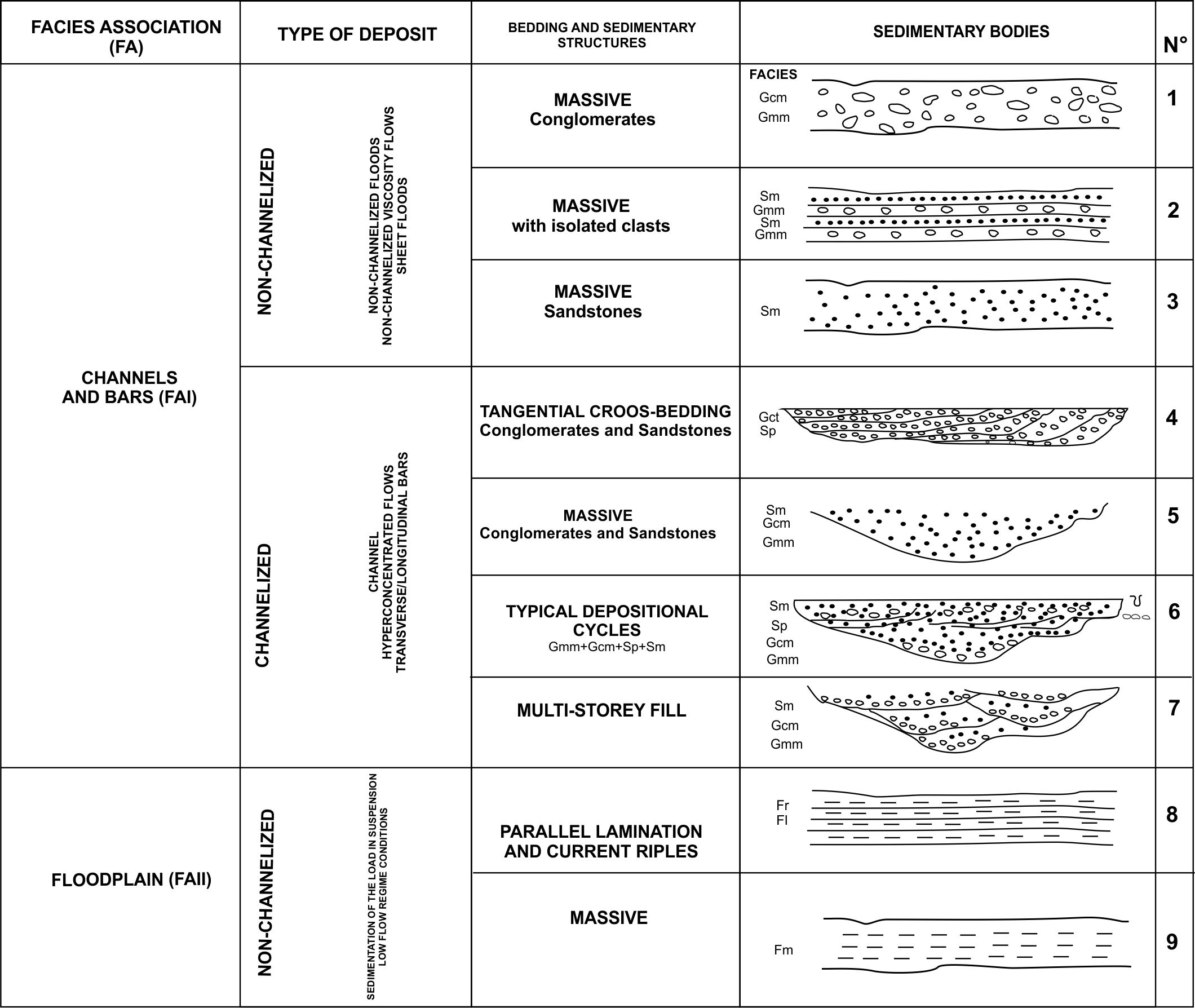 From the facies analysis, two facies associations- Channels and Bars (FAI) and Floodplain (FAII) - were established (Gómez et al., 2016a, b).