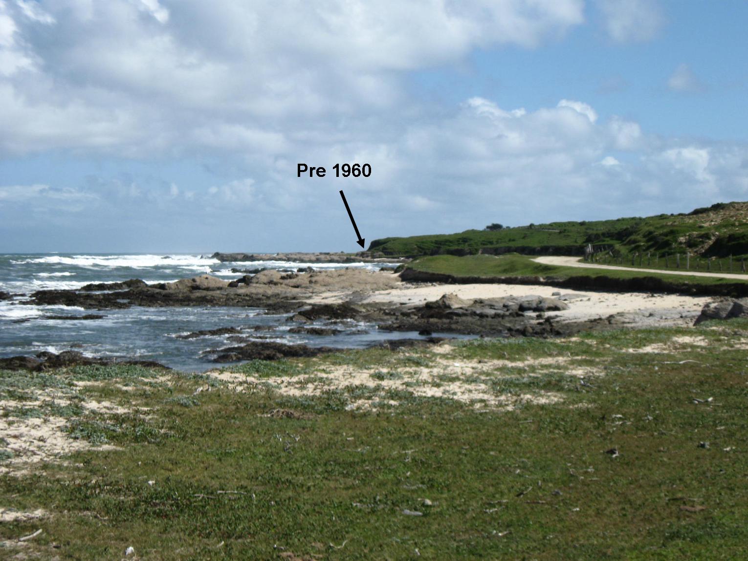 Fig. 6. Evidence of the permanence of the 1960 coseismic uplift at Mocha Island. The former position of the sea before Valdivia 1960 earthquake is displayed. The emersion of the marine abrasion platform allowed building a road that surround Mocha Island. Photo taken on November 6th 2009.