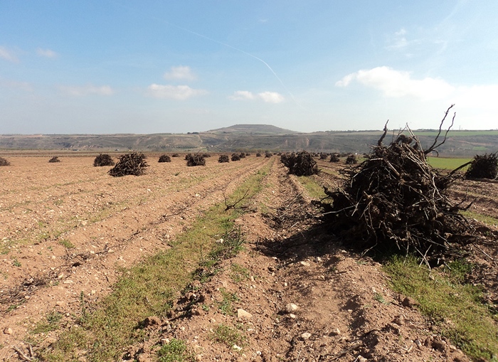 iii. La concentración del viñedo y la formación de grandes manchas. Los programas de reconversión y reestructuración del viñedo permiten el arranque de viñedos (Foto 4) como un proceso más de modernización. El régimen de arranque, en el marco de las OCM vitivinícolas de 1999 y 2008, se interpretó como una medida destinada a configurar un sector vitivinícola más equilibrado entre oferta y demanda y, de manera secundaria, a impulsar la modernización del sector con el arranque de viñedos “marginales” (parcelas de pequeño tamaño, marcos no adaptados a la mecanización, etc.). Más allá de los efectos sobre la influencia en los mercados, el arranque ofrecía una salida digna para muchos viticultores de más de 55 años y sin posibilidades de continuidad familiar en la explotación. Entre los requisitos se incluía el hecho de que las explotaciones no hubieran recibido ayudas comunitarias o nacionales para la reconversión o reestructuración (Ruiz Pulpón, 2015).