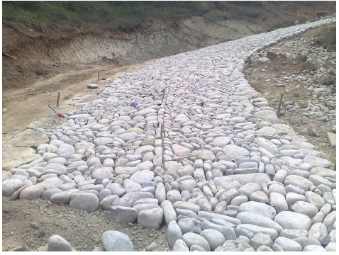 Antes de que esto ocurriera, en diciembre de 2007, se suscribió un Convenio de Colaboración entre el Ministerio de Fomento y la comunidad autónoma para la realización de un Plan de restauración, recuperación y acondicionamiento del Camino de Santiago, que incluía una extensa serie de actuaciones primando el denominado ramal Sur. La filosofía de este plan era la de concebir el Camino como un yacimiento arqueológico lineal, con sucesivas prospecciones que permitieron el afloramiento de múltiples vestigios de las calzadas antiguas (Figura 3). Se consolidaron muros perimetrales, nivelaron pendientes, compactaron terrenos, se protegió a los peregrinos con barandillas de madera en aquellos tramos de cierta peligrosidad y se levantaron puentes peatonales para salvar vaguadas y pequeños cauces. Se crearon además nuevas áreas de descanso con tejado, mesas y bancos, papeleras y fuentes y se actuó sobre la señalización del Camino con información de los diferentes núcleos y lugares de interés y con jalones indicativos en los cruces con referencia a la senda que se debía escoger y los kilómetros que faltaban hasta Santiago (Méndez de Juan, 2011).