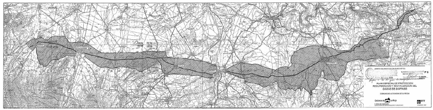 Castilla y León inició el expediente de delimitación del Camino Francés en 1993 y lo concluyó en 1999. En virtud del Decreto 324/1999 de 23 de diciembre, la delimitación del BIC quedó marcada por un ámbito de protección de 100 metros a ambos lados del eje del Camino. Diez años antes, en 1989, habían comenzado los trabajos para elaborar un Plan Especial de Protección para esta ruta que no llegó a ser aprobado (López Trigal, 1993), aunque parte de los trabajos fueron continuados por la Diputación de León que pretendía entonces aprobar un Plan Especial provincial. Desde el año 2000 la Consejería de Fomento contrató la realización de este Plan a una consultora, inicialmente limitada a las provincias de Palencia y Burgos, por el avance de los trabajos que se estaban realizando en León, aunque desde 2005 se decidió unificar los documentos. En 2010 se aprobó provisionalmente el Plan Regional del Camino de Santiago (Figura 9), que incluía además de los 422 kilómetros del trazado delimitado del Camino Francés, otros 218 kilómetros de tramos alternativos. El Plan incluía una serie concreta de medidas para conseguir la revitalización del ámbito territorial asociado al Camino, a través de tres escalas de intervención: territorial, intermedia y próxima y cinco planes estratégicos: Plan de adecuación integral del Camino de Santiago, Plan de Redes dotacionales y dinamización del Camino, Plan de calidad ambiental y del paisaje en el Camino, Plan de desarrollo energético en el Camino y Plan de adecuación de los instrumentos de planeamiento en los municipios atravesados por el Camino. El ámbito de protección intensiva en suelo no urbano se fijaba en 100 metros a ambos lados de la vía y el de protección ambiental a 1 kilómetro. En suelo urbano se fijaban dos tipos de afección, lineal y de conjunto, y en suelo urbanizable se establecían directrices concretas para la reserva de espacios adyacentes y la continuidad del Camino (Andrés y Masiá, 2011).