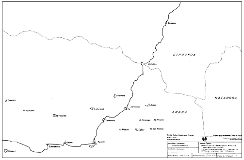 El País Vasco declaró los tramos del Camino del Norte en su territorio BIC y los delimitó en 2000, pero en un documento en el que más que detallar con precisión los tramos del Camino se enumeraban todos los hitos patrimoniales que podían visitar los peregrinos, más de 250, y se incluía un relato de las poblaciones por las que debía pasar. El mapa del Camino, a escala 1:50.000 (Figura 6), carecía en este documento de cualquier tipo de referencia cartográfica que permitiera una correcta localización.