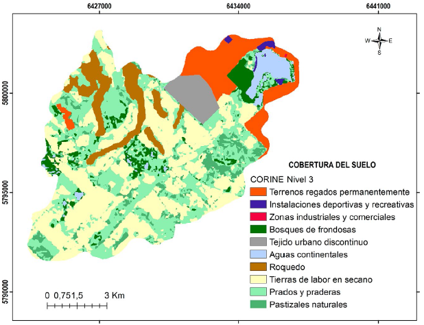 La identificación y localización de los distintos usos del suelo se basó en CORINE LandCover [CLC 2000], trabajando hasta el nivel 3. Mediante la interpretación de imágenes Landsat y del Google Earth Pro y el reconocimiento de campo se completó el relevamiento de los distintos tipos de coberturas del suelo en el área que luego se digitalizaron en pantalla mediante el software SIG ArcGis 9.2. y para su valoración económica se realizó en base al criterio propuesto por Agudelo Patino y Correa Restrepo (2000). Para la evaluación del secuestro potencial de carbono se ha realizado la estimación de la biomasa acumulada de los diferentes componentes vegetales (Guerrero y Culós, 2007; FAO 2002; Serrada, Montero y Reque, 2008; Cordova Reyes, 2008). Y el cálculo del SE valor de existencia de la biodiversidad -un valor de no uso que considera el valor intrínseco del recurso biológico- se determinó a partir de considerar el monto que la sociedad está dispuesta a pagar -disponibilidad a pagar- para conservar ese bien a futuro cuanto destina el estado en conservación de áreas destinadas a su conservación (Azqueta y Field, 1998; Izko y Burneo, 2003; Lomas et al., 2005; Guerrero, Sosa, Rodríguez y del Fresno, 2013).
