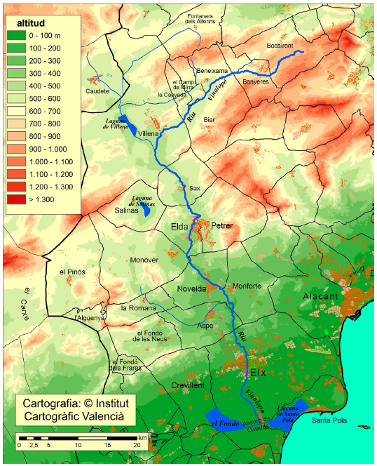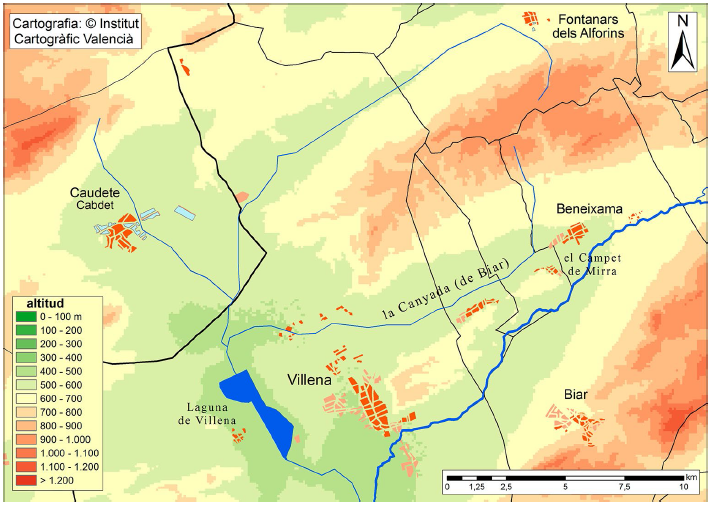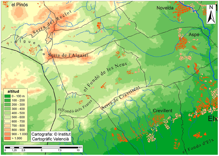 También Fontanars, ‘manatiales’, es una zona rica en aguas, parte de las cuales se dirigen hacia el Vinalopó (figura 4).