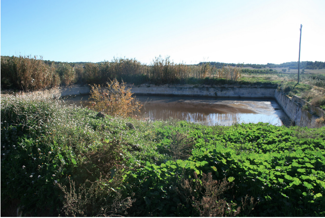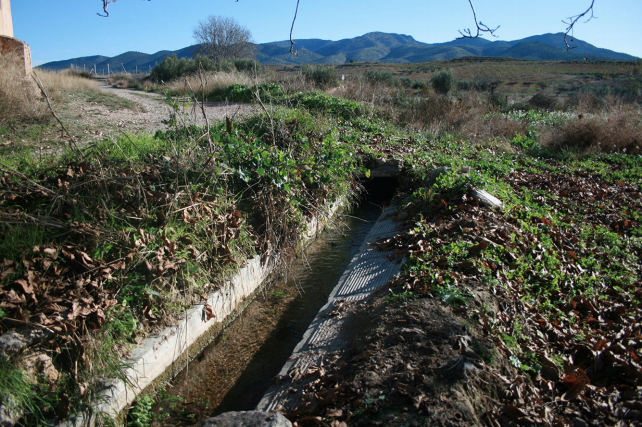 Por su parte, los caudales subálveos del barranco del Madroño, conocido como aprovechamiento de Torralba, han sido utilizados desde la antigüedad. En el lugar se construyó una galería excavada en roca que captaba y desviaba las aguas de este entorno, y que se conectaría presumiblemente con una villa romana. Por medio del análisis de campo y del trabajo realizado por Gris, Solís y Gris (2002) se constata la presencia de una larga conducción a cielo abierto, horadada en la roca, con varias piscinas de almacenamiento y decantación, que servían para traer las aguas del barranco. El estado de conservación de este tramo es bastante deficitario debido a su abandono, así como por diversas actuaciones realizadas para acondicionar regadíos intensivos. El inicio del sistema, sin embargo, en mejor estado de conservación, estaba configurado por un túnel con “una longitud de 138 metros, contando con un total de cuatro pozos de aireación y dos salidas en rampa, que se usarían para la limpieza y extracción de los sedimentos acumulados en la canalización” (Gris et al., 2002, p. 181). Como señalan estos investigadores, la configuración de un acuífero local, denominado de Torralba, que presenta el juego de materiales margosos infrayacentes y calizas permeables, y que emergen en el barranco del Madroño, justifica que los antiguos pobladores se plantearan la construcción de una galería de captación, con el fin de aprovechar estos recursos que brotarían por su pie, para abastecer a la villa.