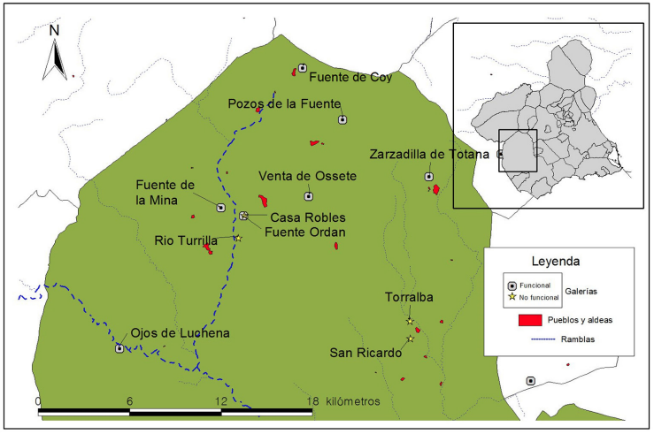 En este contexto geográfico, caracterizado por ser uno de los más secos de la Región de Murcia, la búsqueda de recursos hídricos bajo el suelo ha sido una necesidad durante siglos, al carecer de cursos de aguas superficiales que posibiliten un abastecimiento continuo; un trabajo considerable si se tienen en cuenta los conocimientos y materiales rudimentarios de los que disponía la sociedad, a diferencia de las posibilidades tecnológicas actuales. Así, se entiende el número de galerías y minas construidas a lo largo de este territorio semiárido, que siguen funcionales en la actualidad, y que corroboran la hipótesis inicial de la investigación. Esta recaía en la existencia de numerosos sistemas drenantes, que condicionan el paisaje tradicional y que han servido para abastecer, durante siglos, a la población y generar espacios regados. A este legado patrimonial se unen un conjunto de construcciones complementarias, también relacionadas con el uso del agua, como lavaderos o molinos, entre otros; un bien indispensable, no solamente para el abastecimiento y el regadío, sino también como recurso energético o salutífero.