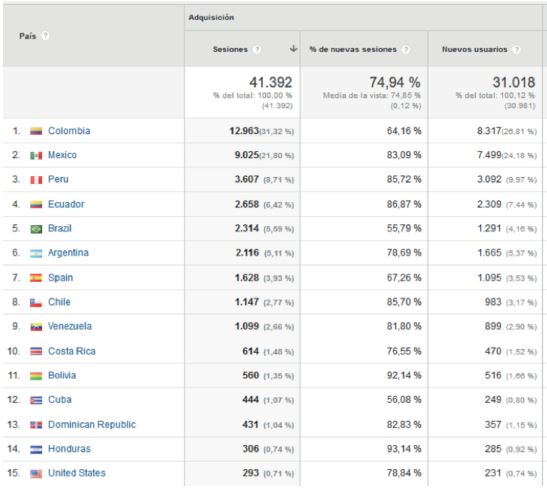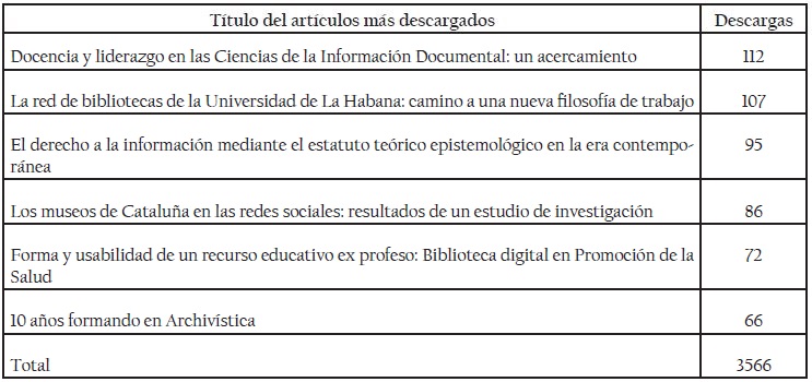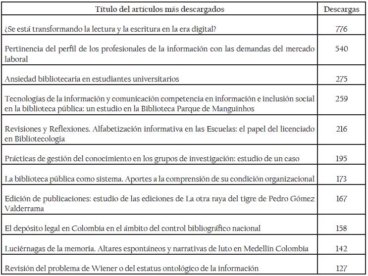 La siguiente información estadística está divida en cuatro fases: la primera es la información general de la revista y muestra la información del volumen 39. La segunda es la información generada desde nuestro OJS y se evidencia el movimiento en cuanto a descargas del volumen 38 que es último publicado desde sus tres números completos, esta información fue generada por el profesor de la Escuela Interamericana de Bibliotecologia Alexander Betancur. La tercera información es con base en Google Analytics, que mide el comportamiento del sitio de la revista. Estos datos comprenden desde enero de 2015 hasta agosto de 2016. Por último, como en la RIB 38-3 de 2015 mostramos los datos generados desde el Sistema de Información Científica Redalyc, estos tienen un análisis hasta noviembre de 2015.