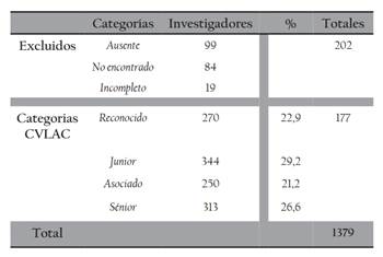 • Localización de los perfiles de estos investigadores en la plataforma CvLAC y registro de su clasificación de investigador: Sénior, Asociado, Junior o Reconocido.