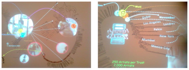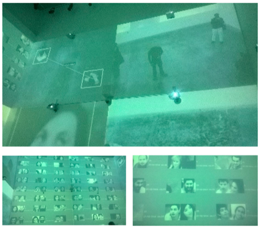 El mismo artista, Lozano-Hemmer, en colaboración con Krzysztof Wodiczko en el mismo MUAC, pero en una sala distinta, presentó en 2015-2016 la instalación interactiva Pabellón de ampliaciones con el apoyo de proyectores, computadoras, cámaras de vigilancia y luces que, con la ayuda de algoritmos, detectan la presencia de los asistentes y mapean su relación con el espacio a la manera de algunos textos de ciencia ficción, series televisivas policiacas o películas de acción, donde se argumenta que todos estamos siendo observados. Los artistas a través de cámaras, filmaciones y retransmisiones demuestran que esto es posible, la grabación e identificación de perfiles (Imagen 2). En las imágenes, ampliadas hasta 35 veces, se observan los detalles faciales y los datos escritos tanto de la hora y fecha de grabación como información de la posición geográfica del público asistente dentro de la misma sala de exposición de la obra.